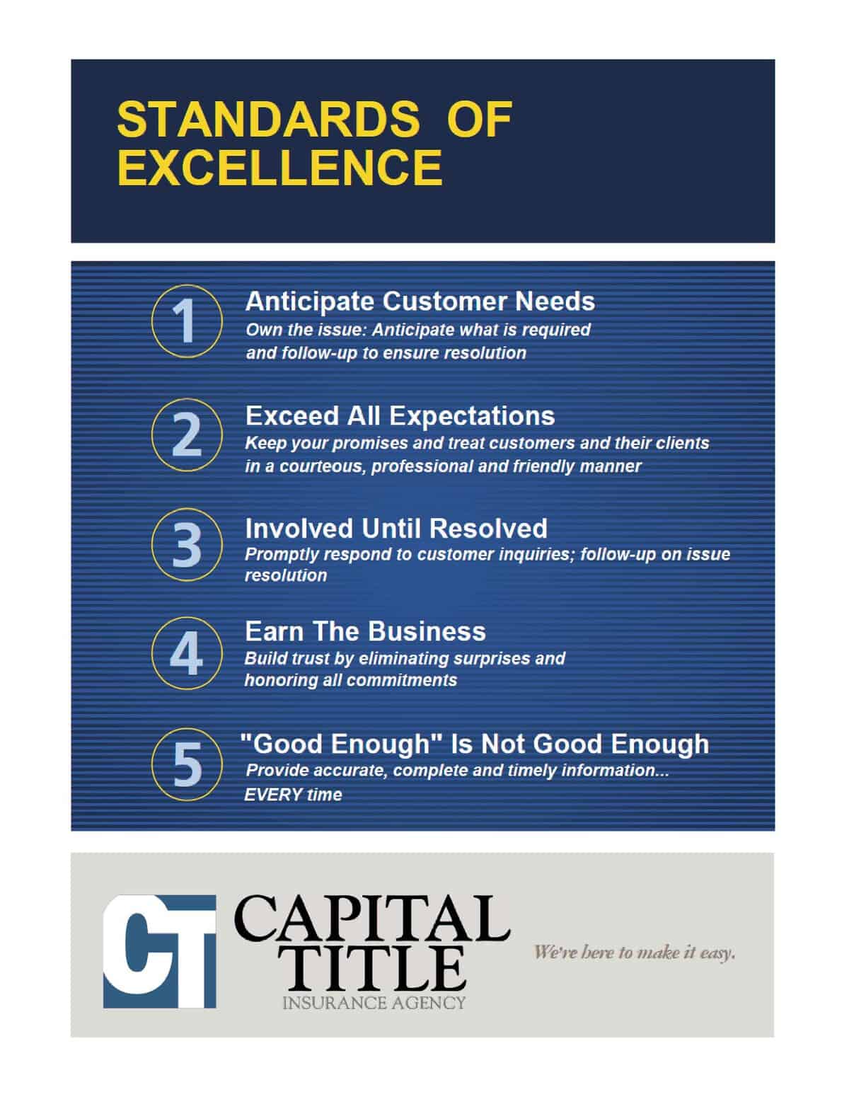 By ensuring our employees adhere to our Standards of Excellence, it guides us to be mission-minded; to be the number one ranked title company in Michigan in quality and service.